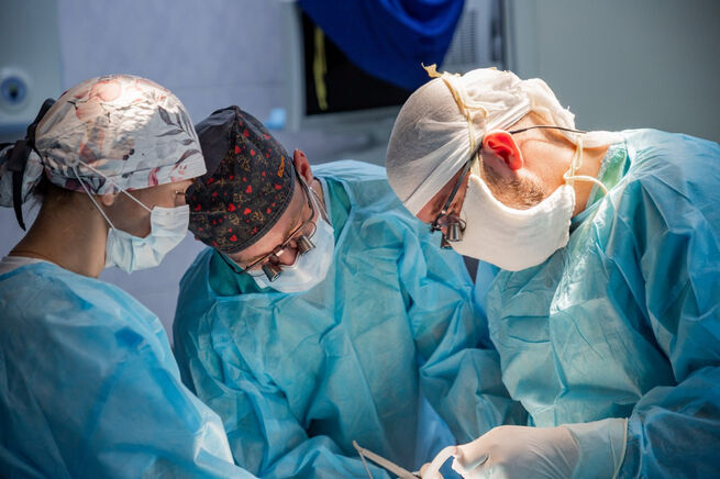 Ребенка положили на операционный стол, нейрохирурги вскрыли череп и удалили сгусток крови. Далее вырезали костный лоскут и зафиксировали на месте трепанации хирургическими нитями.