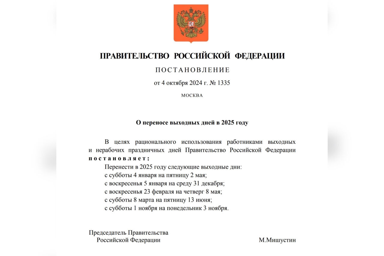 В субботу, 1 ноября, рабочий день будет на час короче. При этом выходной в понедельник, 3 ноября, компенсирует работу в субботу, чтобы обеспечить непрерывные выходные.