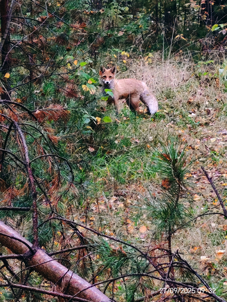 – В лесу встретили красавицу лисицу, очень любопытная, но осторожная. С интересом наблюдала за нами, пряталась в кустах, потом выглядывала. А когда мы пошли в другой пролесок, то вышла проводить нас, скромненько присев на небольшой полянке, – поделился очевидец.