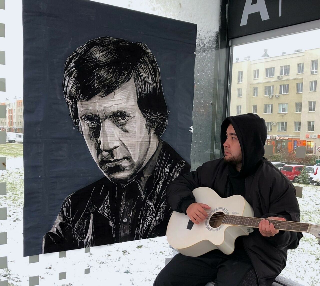 Портрет Высоцкого украсил остановку в Кемерове