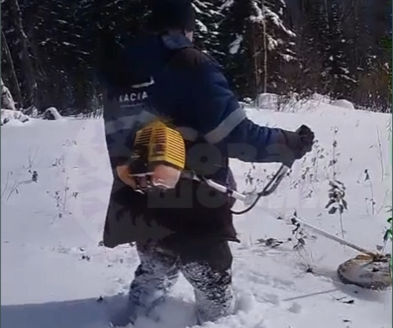 Работников отправили на гору в Шерегеше, чтобы они косили там траву. При этом уже выпало большое количество снега, сугробы людям уже по колено. Информация об этом появилась в социальных сетях.