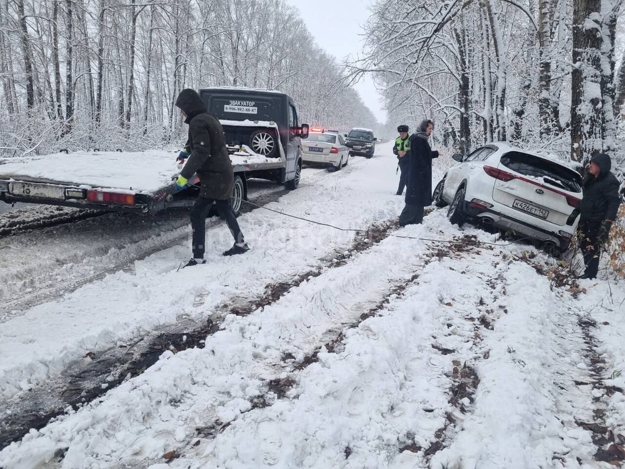 Инцидент произошел на автодороге Ленинск-Кузнецкий – Полысаево. Там в кювет слетел автомобиль Kia Sportage.