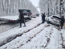 Как выяснилось, водитель не справилась с управлением на скользкой дороге. В результате ее автомобиль съехал с проезжей части. Самостоятельно выбраться на дорогу она не смогла.