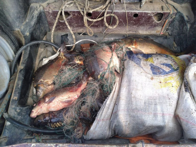 После этого на поиски злоумышленника отправились все дежурные патрули. В итоге правоохранители обнаружили автомобиль, за рулем которого находился 38-летний ранее судимый мужчина. В багажнике машины полицейские нашли рыболовные сети и зеркальных карпов. Как уточняет издание NewsTracker, браконьер выгреб из пруда десятки рыб.