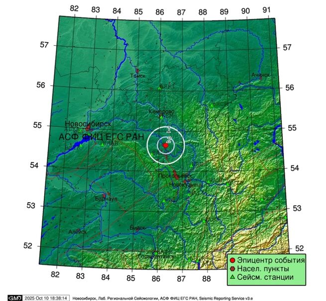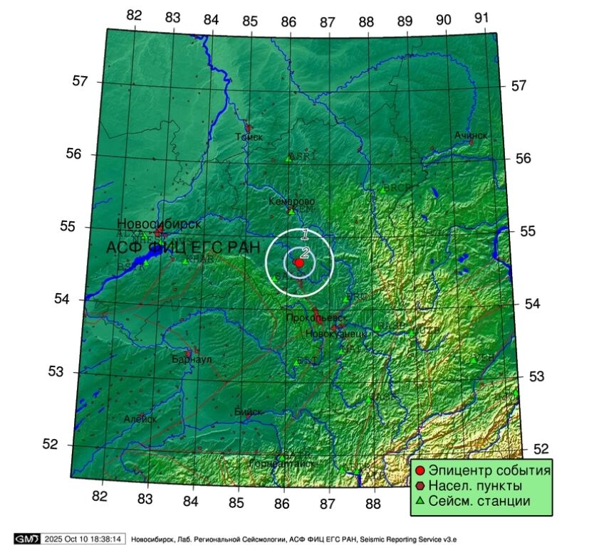 Сообщается, что землетрясение произошло на территории Ленинск-Кузнецкого муниципального округа. Подземные толчки зафиксировали в 00:42 11 октября. О случившемся сообщает Алтае-Саянский филиал Единой геофизической службы РАН.