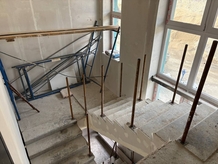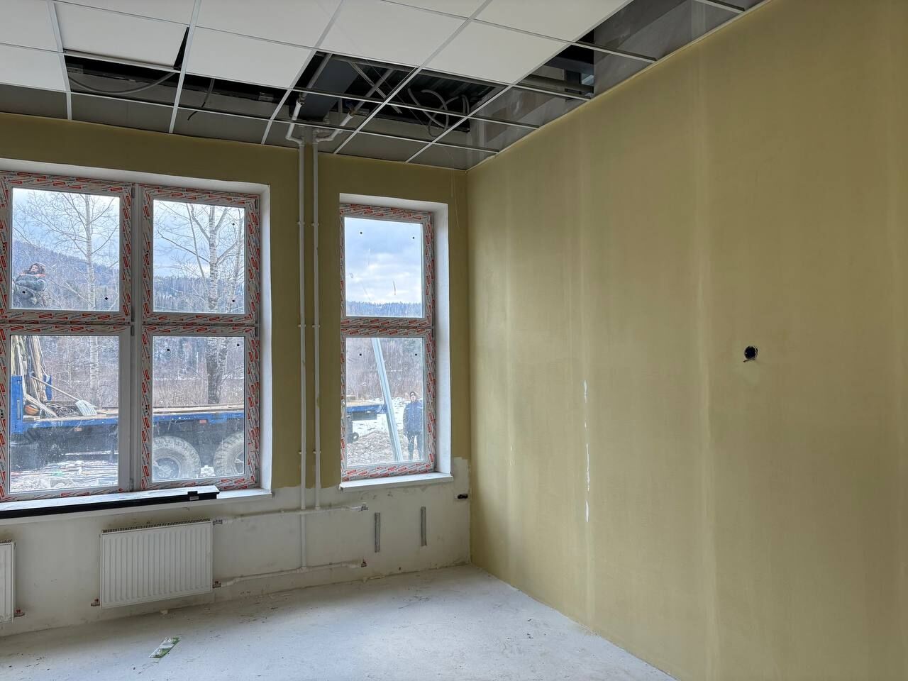 Так, сейчас проводится ряд работ. Среди них: устройство систем вентиляции, водоснабжения и канализации, подготовка к пусконаладке ряда систем, подготовка первого этажа к разводке отопления, монтаж наружного водостока по периметру здания. Также ведутся работы по чистовой отделке помещений. Специалисты окрашивают стены, укладывают керамогранитной плиткой пол, монтируют подсистемы для подвесного потолка.