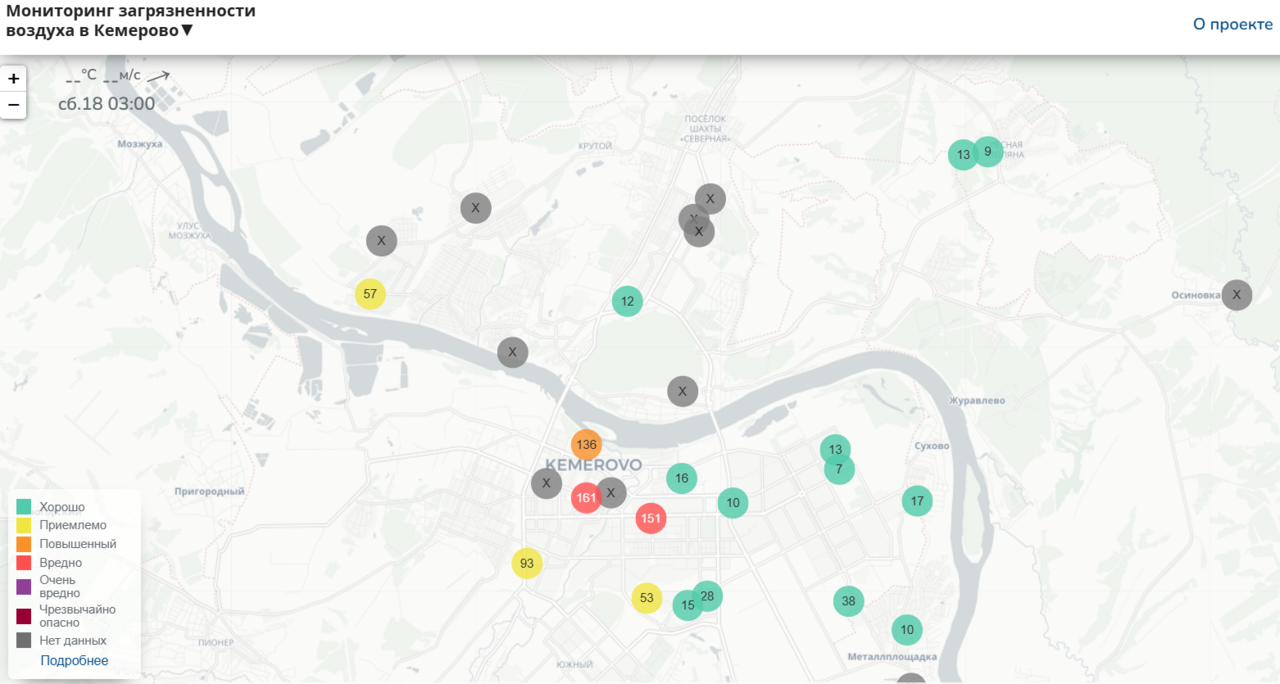 Однако есть нюанс. Как указывает независимый мониторинг загрязненности воздуха, днем в пятницу, когда лаборатория брала пробы, кемеровский воздух действительно был чист по частицам PM 2.5. Но стоило наступить ночи, как в некоторых точках концентрация взлетела до повышенных и вредных значений. То же касается предыдущей ночи и ночей до этого.