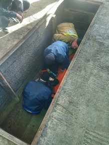 Приехавшие по вызову спасатели зафиксировали поврежденные конечности, аккуратно извлекли пострадавшую с использованием аварийно-спасательного инструмента и передали бригаде скорой помощи, сообщает управление по защите Новокузнецка.