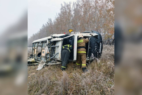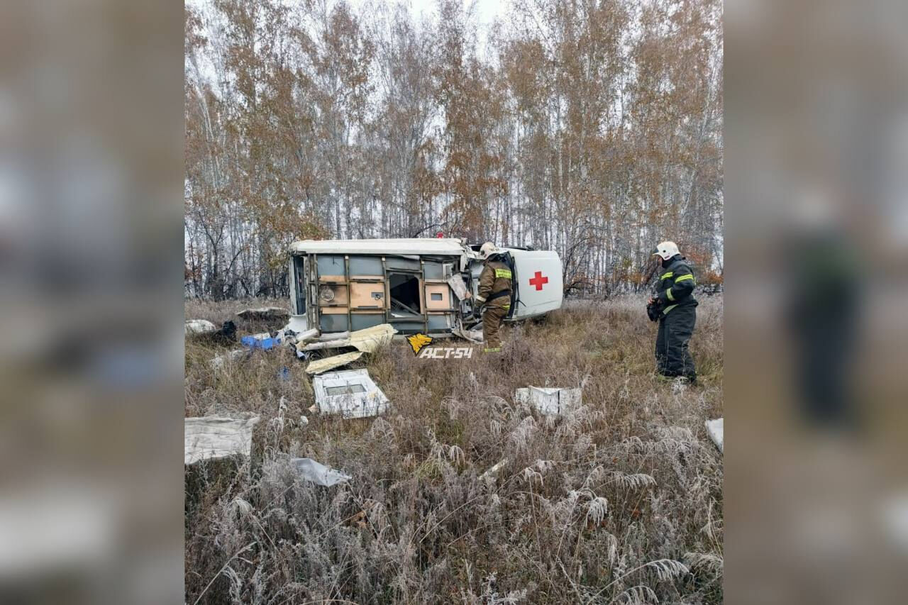 В Новосибирской области автомобиль скорой помощи перевернулся, когда вез беременную женщину в больницу.