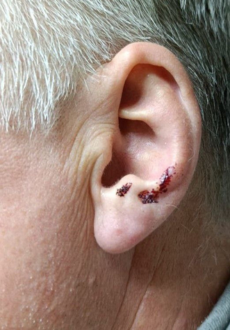 Он также поделился кадрами с последствиями инцидента: повреждения кожных покровов, гематома, травма руки.