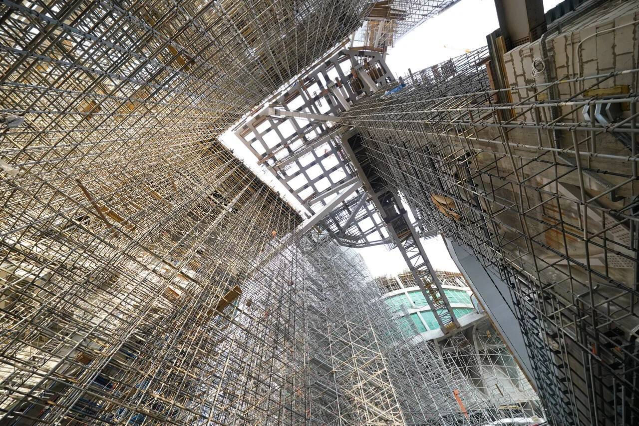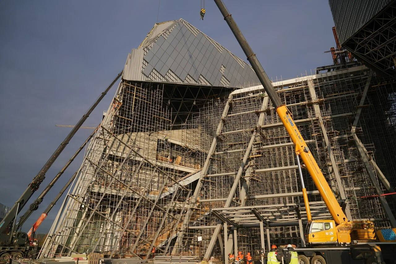 Уже 75% здания закрыты в тепловой контур, включая залы Кузбасского центра искусств, Русского музея и филиала Мариинского театра. Внутри завершены половые покрытия, начата отделка потолков, установлены эскалаторы.