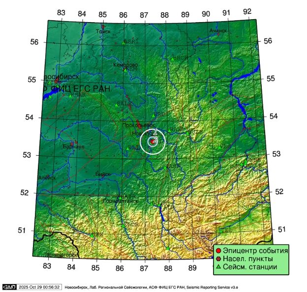 На территории Калтанского городского округа в Кузбассе было зафиксировано землетрясение. Оно произошло в 06:28 сегодня, 29 октября. Сообщение об этом появилось в оперативной сводке Алтае-Саянского филиала Единой геофизической службы РАН.