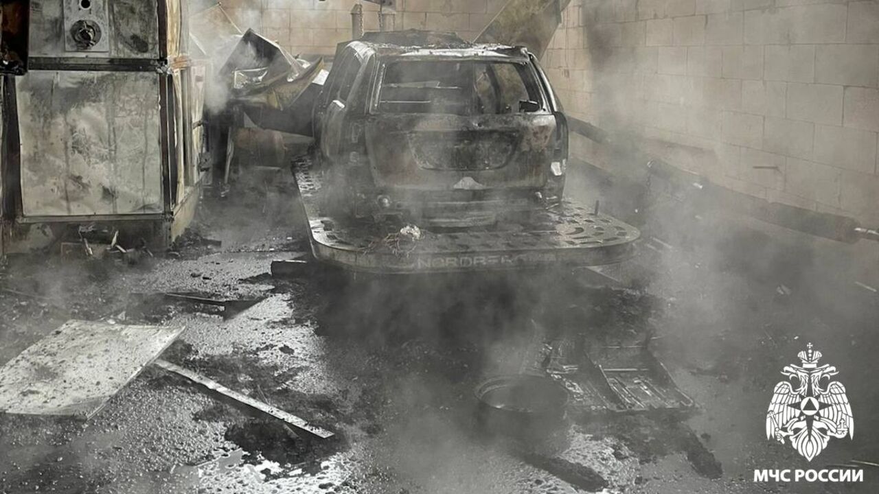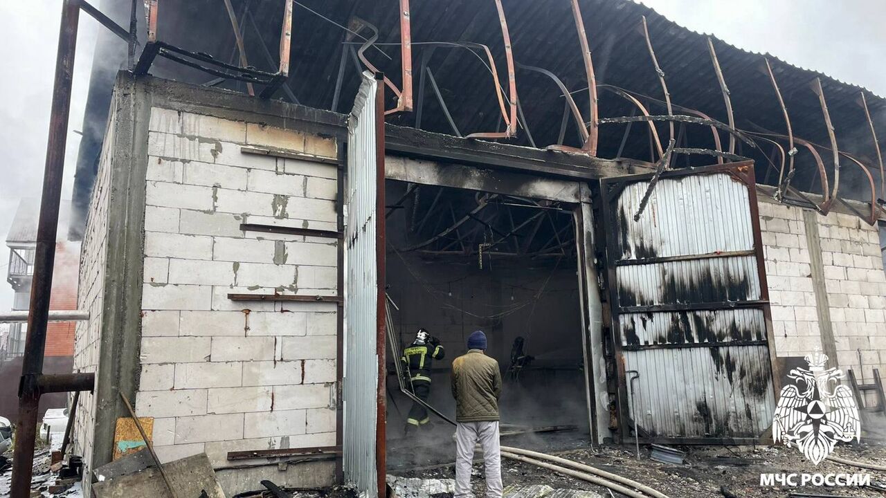 – В результате пожара сгорело и обрушилось потолочное перекрытие на всей площади, 2 автомобиля выгорели полностью, сгорел электроинструмент и оборудование, – рассказали в ведомстве.