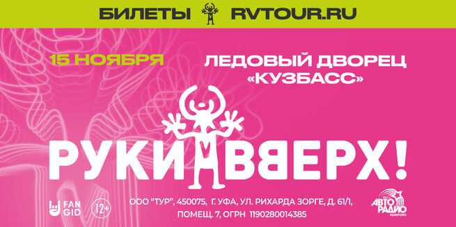 15 ноября 2025 года группа "Руки Вверх!" привезет в Кемерово обновленное шоу. Для большого юбилейного тура была подготовлена новая танцевальная шоу-программа, заряжены тонны звука и света. Зрителей концерта ждет настоящая лавина чувств, которые можно выплеснуть на танцполе под любимые песни и легендарные хиты.