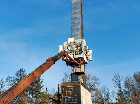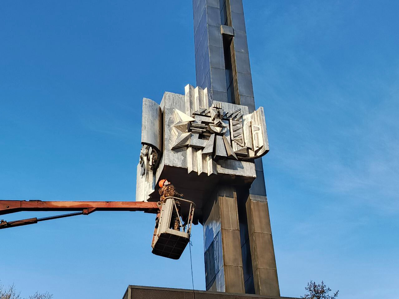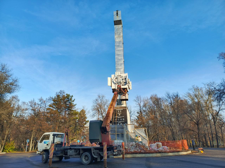 В Новокузнецке продолжается ремонт стелы "50 лет Новокузнецку". Работы выполнены на 80%.