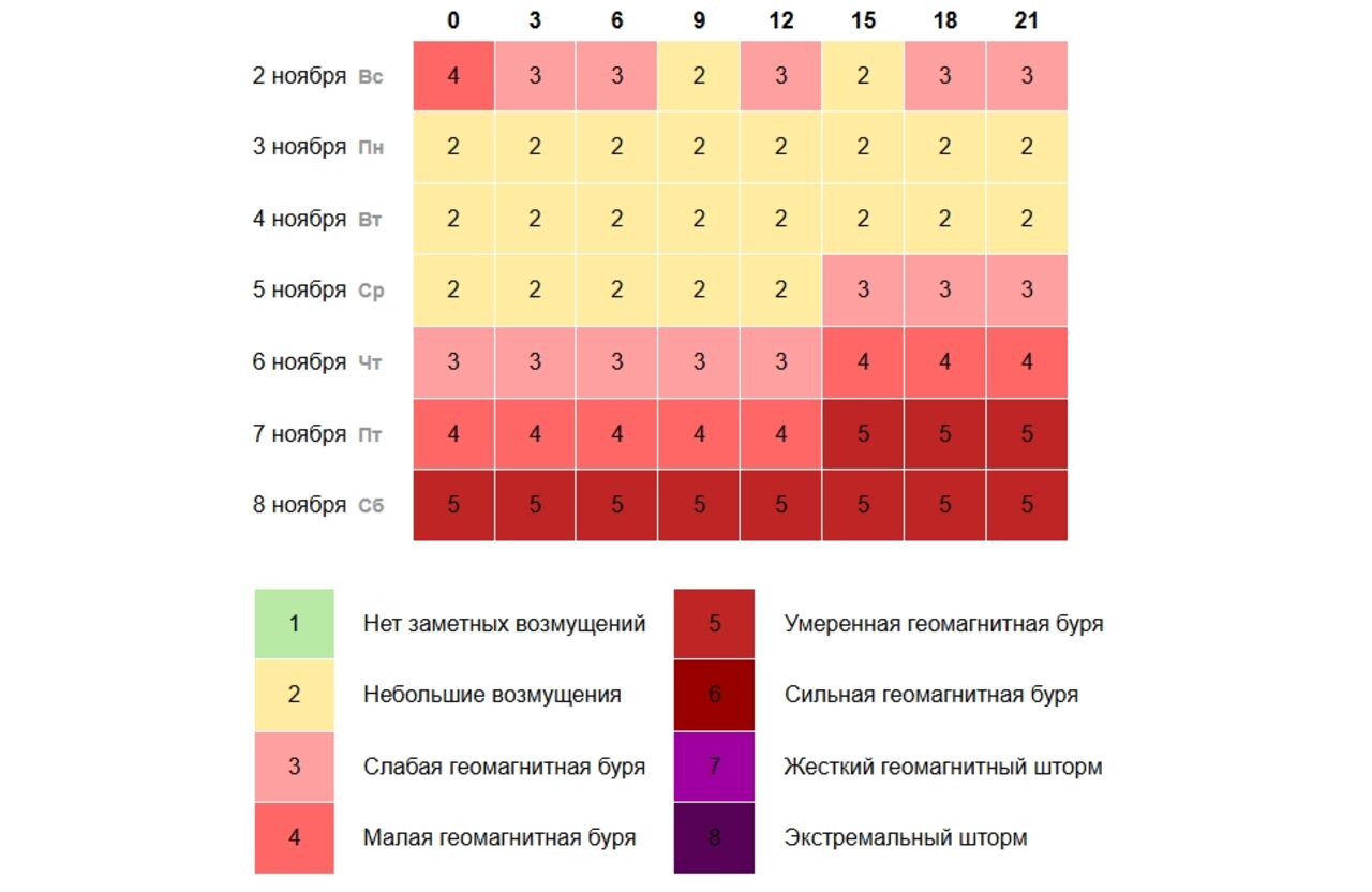 Ситуация сохранится до 12:00 9 ноября. После магнитные бури станут слабее.
