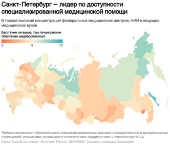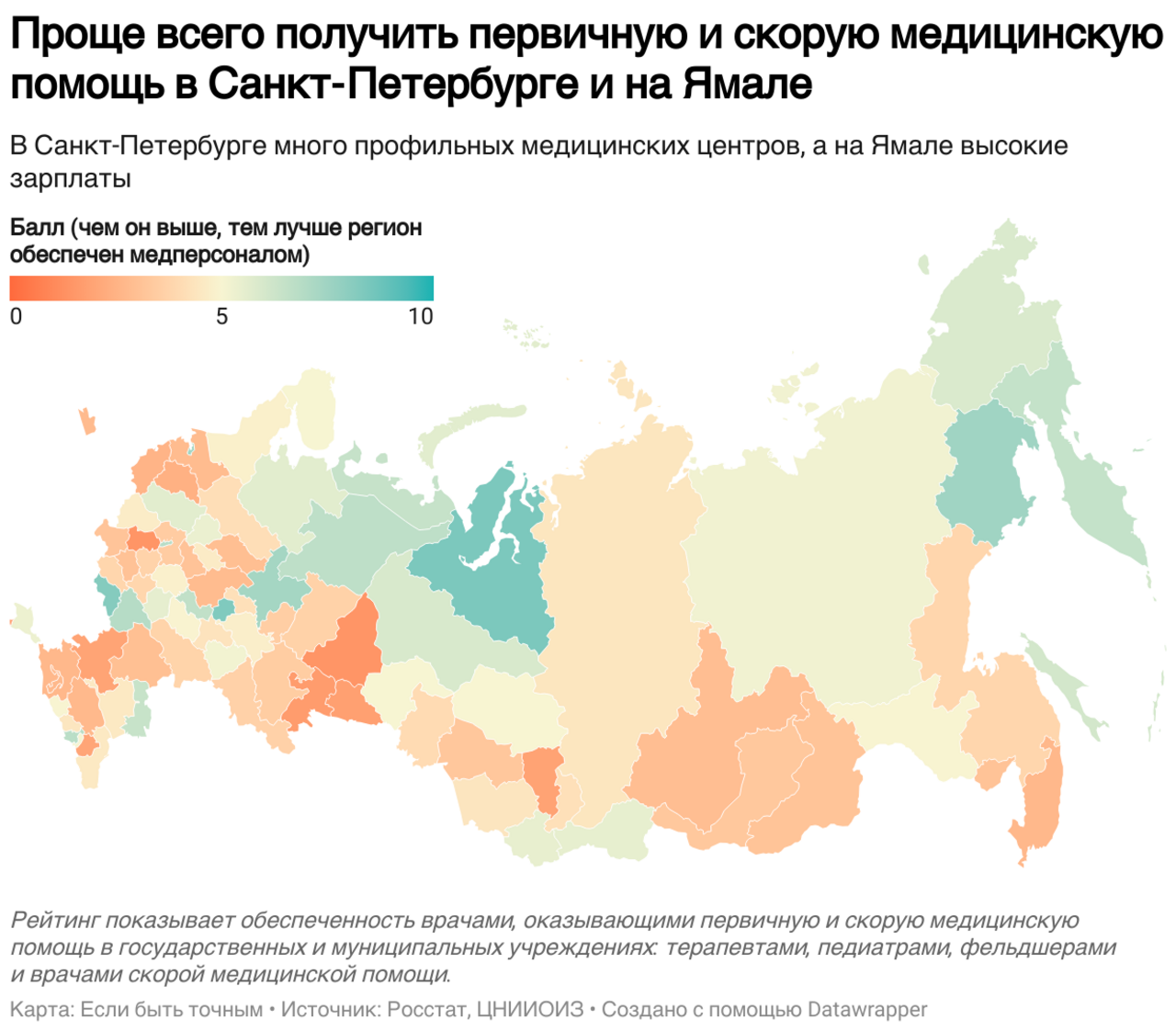 Статистическая платформа "Если быть точным" провела исследование на основе данных Росстата и ЦНИИОИЗ и составила рейтинг российских регионов по доступности медицины.