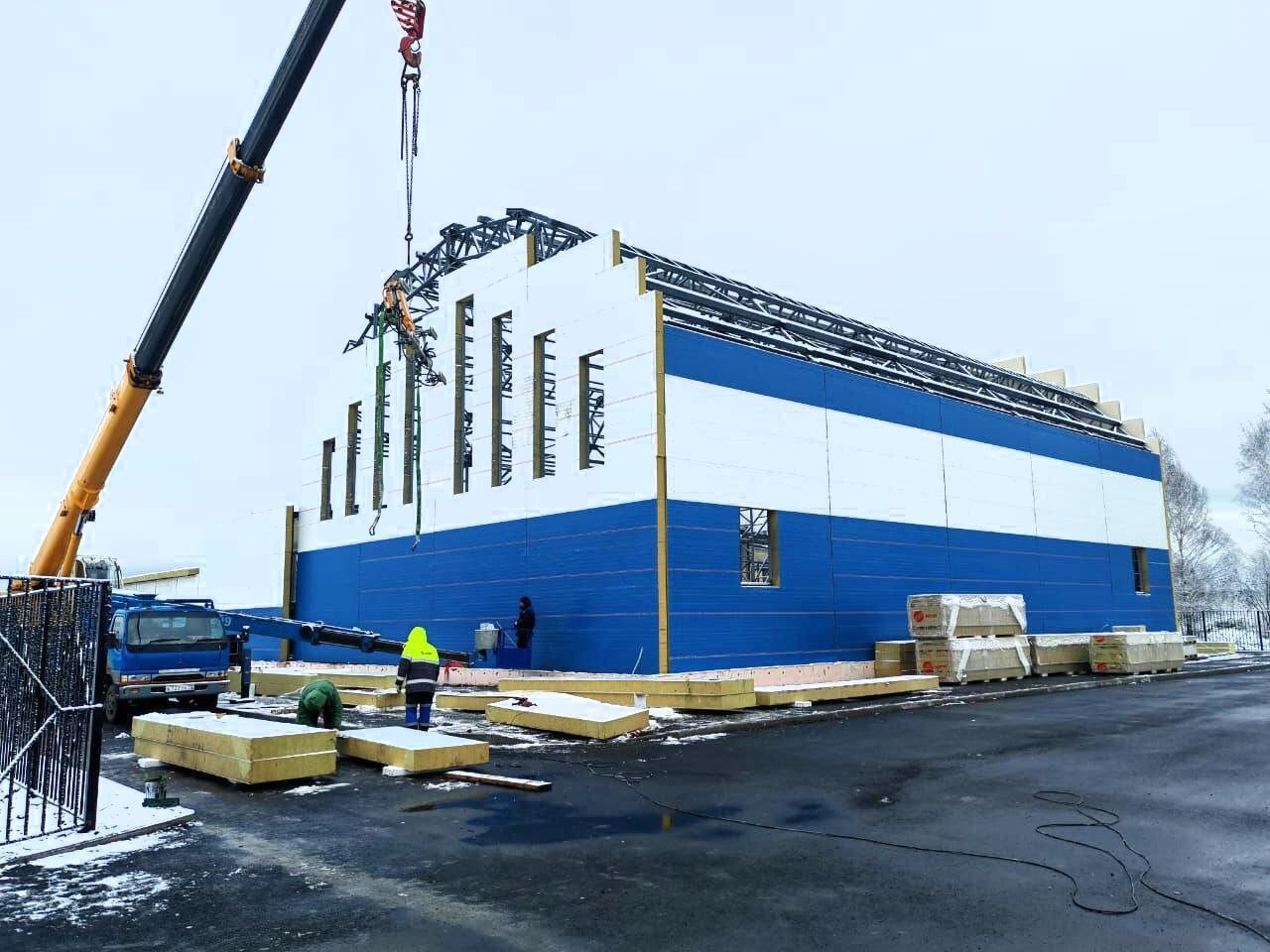 Так, на сегодняшний день были полностью завершены работы по устройству бетонного основания под модульное здание и прокладке инженерных коммуникаций. Кроме того, проводится монтаж сэндвич-панелей и кровли, ведутся благоустроительные работы. Сдача объекта планируется к новому году.