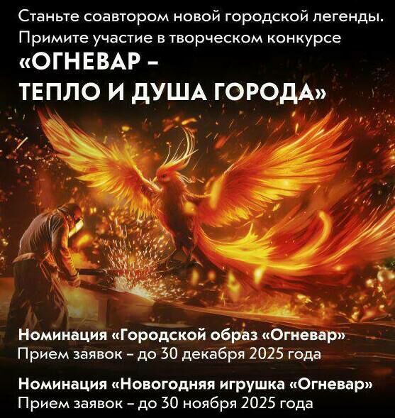 – Этот конкурс – возможность вовлечь горожан в совместное осмысление образа "Огневара" и создать новую легенду, которая будет привлекать внимание к уникальным городским феноменам и металлургии, побуждать к дальнейшим открытиям. Мы уверены, что совместными усилиями создадим новые знаковые места, которые полюбятся и жителям, и гостям, – отметила директор регионального центра корпоративных отношений "Сибирь" ЕВРАЗа Анастасия Кривоноженко.