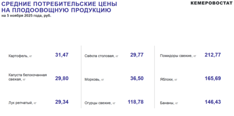 По данным Кемеровостата, с 29 октября по 5 ноября в регионе стали дороже такие продукты, как огурцы – на 9,6%, свекла – на 3%, гречка – на 2,7%, помидоры – на 2,2%, яблоки – на 2%.