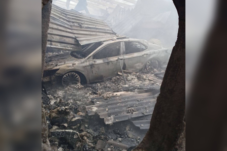 Полностью сгорели пять легковых автомобилей, пять грузовиков, пять мотоциклов и две единицы специальной самоходной техники.