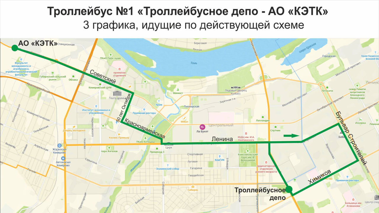 С 17 ноября в Кемерове начнет работу новый троллейбусный маршрут №1А, который пройдет через проспект Ленинградский и улицу Марковцева. Новый маршрут №1А будет курсировать параллельно с существующим троллейбусом №1, который сохранит прежнюю схему движения.