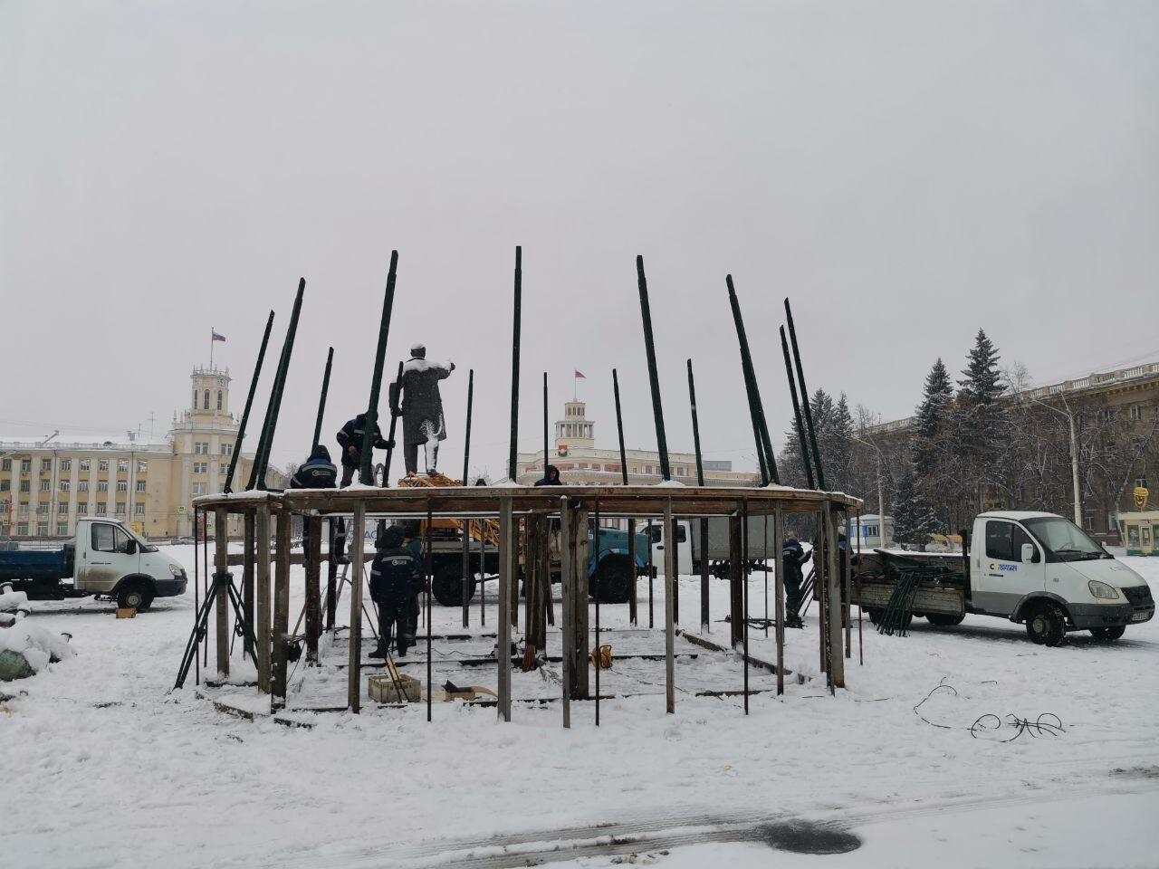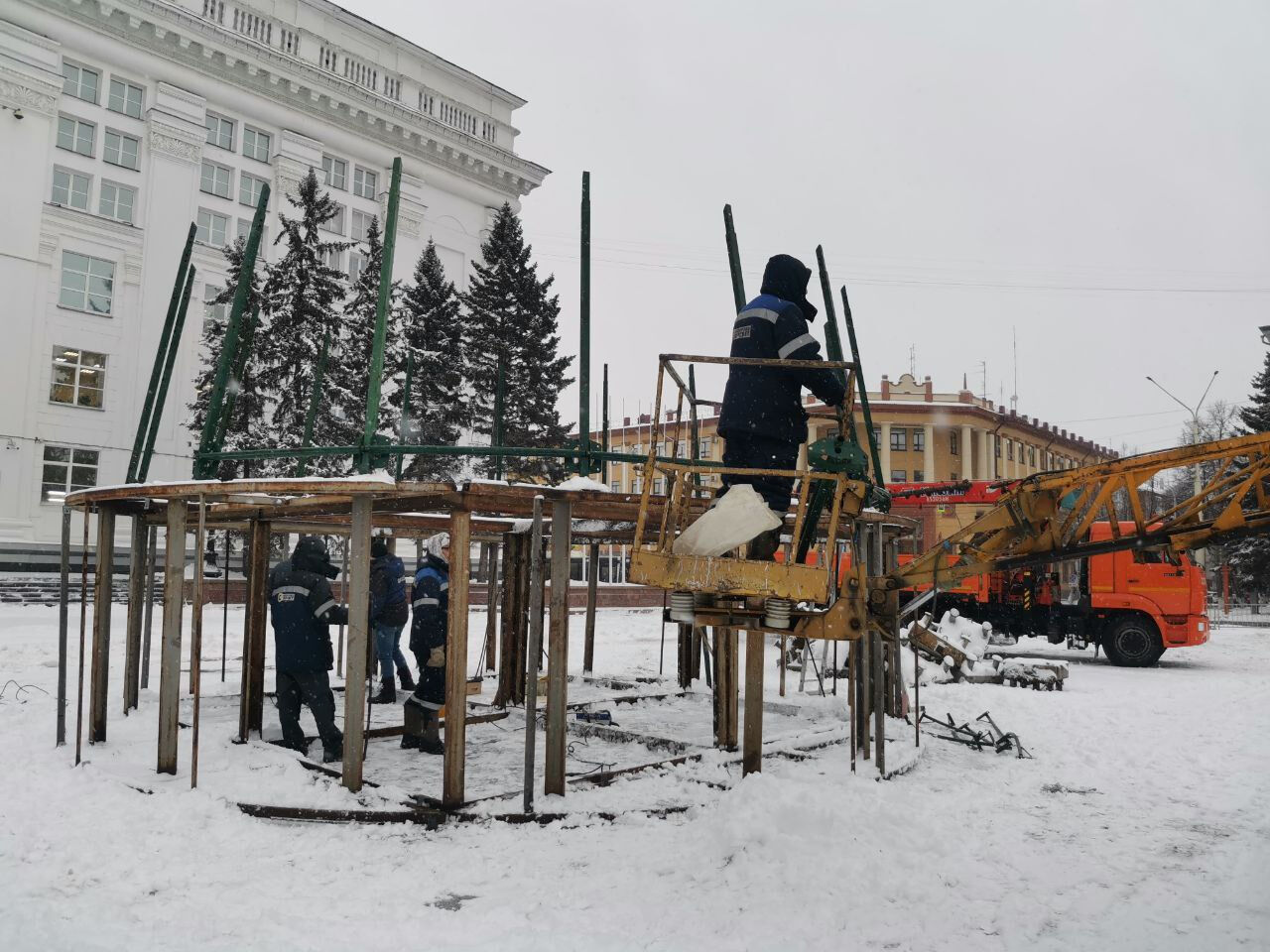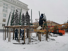 На центральной кемеровской площади началась установка главной новогодней красавицы. Там же появятся другие точки интереса.