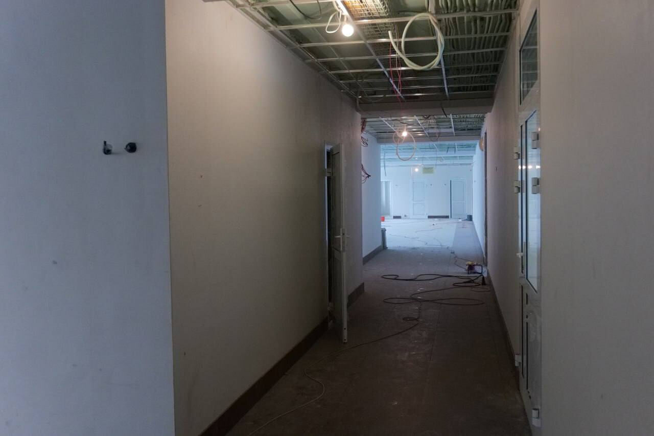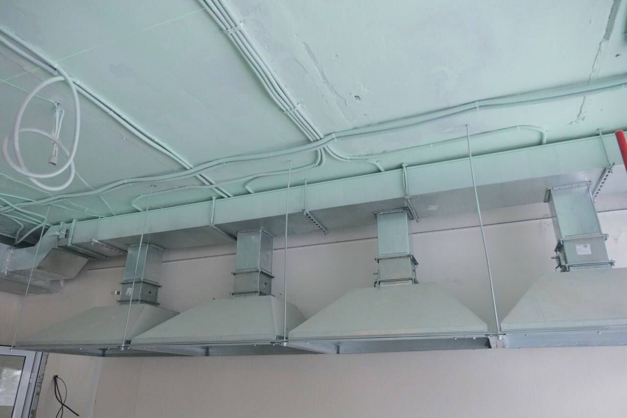 На данный момент готовы кровля, фасады, отопление, водоснабжение, вентиляция и благоустройство территории. Завершают чистовую отделку, монтаж электросетей и слаботочных систем, идут работы на входах и пищеблоке.