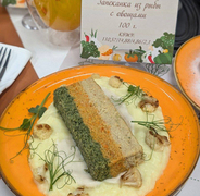 "Звездой" вечера стала запеканка из рыбы с овощами, признанная недавно одним из вкуснейших блюд на Всероссийском конкурсе "Лучшая школьная столовая". Внешний вид блюда может кого-то отпугнуть, но авторы идеи объяснили её суть.