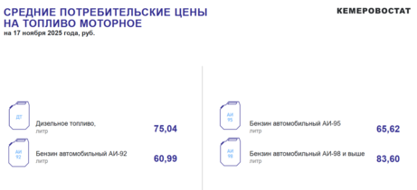 Литр АИ-92 в среднем не изменился в цене (60,99 рубля), АИ-95 – подешевел на 0,1% (до 65,62 рубля), АИ-98 – прибавил 0,4% (до 83,60 рубля).