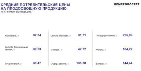 По данным Кемеровостата, с 10 по 17 ноября в регионе стали дороже такие продукты, как морковь – на 11,2%, огурцы – на 7%, помидоры – на 6,4%, сыр – на 4,1%, картофель – на 3,1%, свёкла – на 2,7%, капуста – на 2,3%, репчатый лук – на 2%.