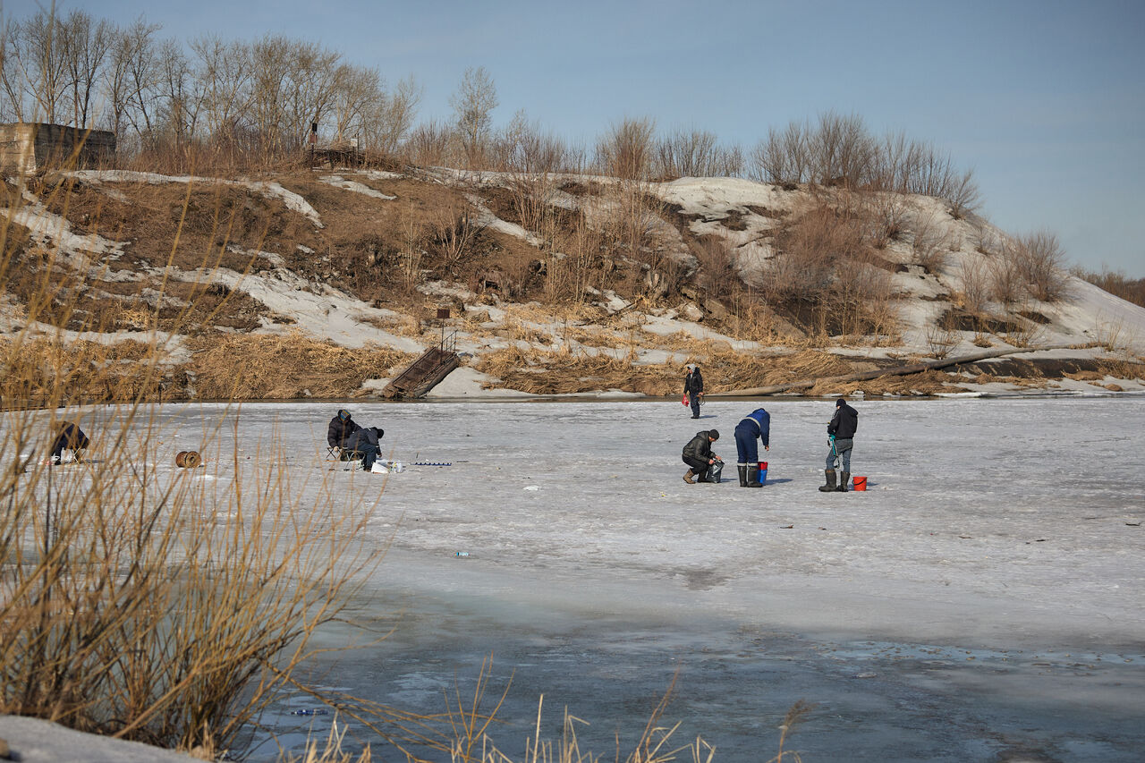 Кемеровские рыбаки поспешили на реку Томь, которая ещё не успела полностью замёрзнуть.