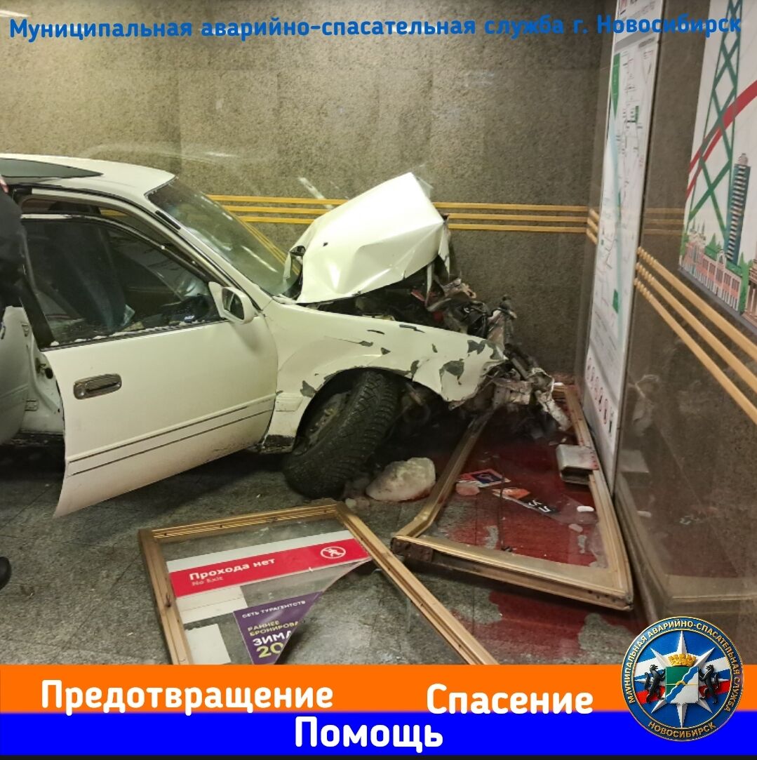 Водитель с места аварии скрылся. Спасатели демонтировали повреждённые конструкции входной двери, которые были сильно повреждены. Помощь спасателей в извлечении автомобиля из метро не потребовалось.