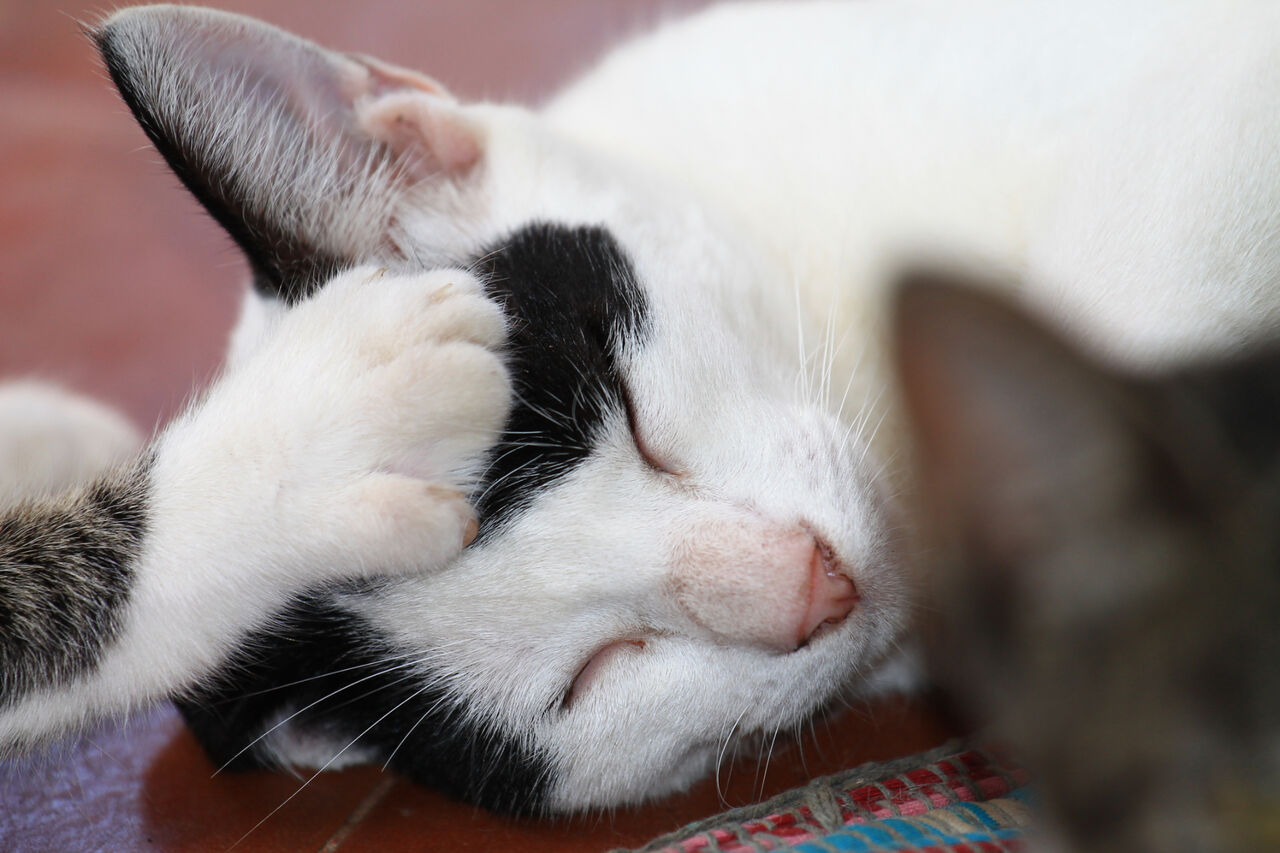 Когда котёнок был совсем маленьким, мама-кошка вылизывала ему голову, даря чувство тепла и защиты. Повзрослев, питомцы ищут те же ощущения, чтобы успокоиться.