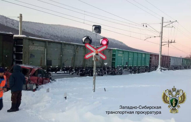 Как сообщили в Западно-Сибирской транспортной прокуратуре, авария произошла из-за того, что водитель машины проигнорировал запрещающий сигнал светофора и выехал на пути прямо перед движущимся составом.