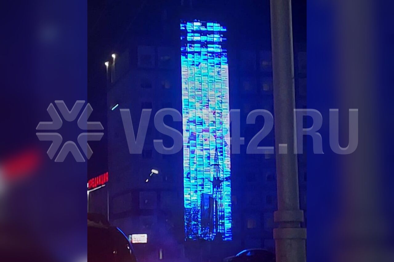 В Кемерове гигантский медиафасад превратился в необычный световой столб.