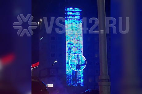 Кемеровчане заметили необычное зрелище – на здании "Редакции" гигантский экран превратился в световой столб с романтическим сюжетом.