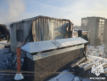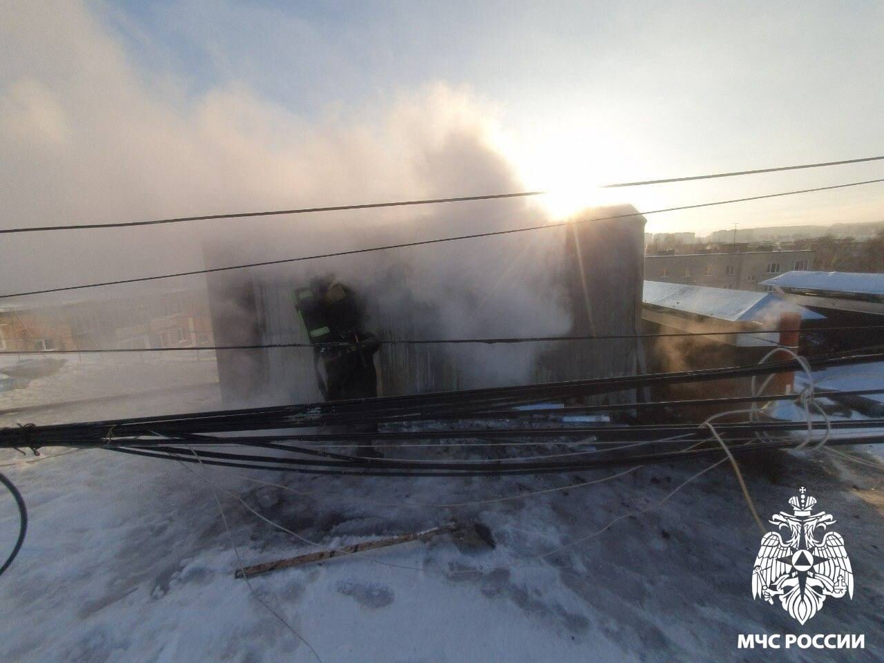 На улице Радищева, 6 в Кемерове горел строительный вагончик на крыше пятиэтажки, сообщает областное МЧС.