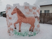 Рядом с одним из домов в жилом районе Ягуновский появилась новогодняя сказка. Местный житель Алексей Кравченко вместе с двумя сыновьями несколько вечеров лепил из снега целый новогодний мини-городок. Об этом рассказали в городской администрации.