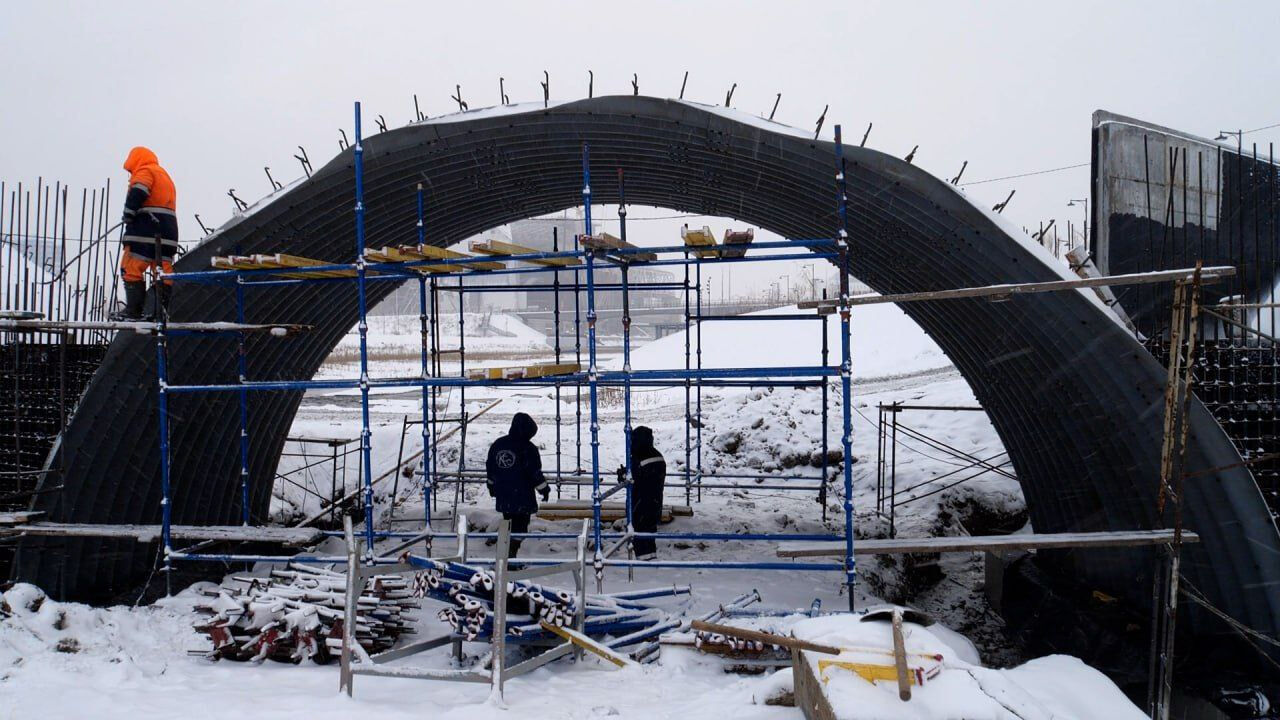 Как сообщили в мэрии, все подготовительные работы завершены, а арки будущего перехода уже собраны и протянуты. Для удобства строителей проложили две временные технологические дороги.