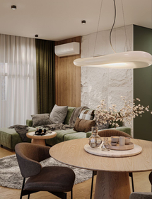 Процесс отделки и подбора мебели напоминает маленькую новогоднюю сказку. Мы тщательно подбираем материалы, цвета и текстуры, чтобы каждая деталь радовала глаз и согревала душу. Встроенная мебель и кухонный гарнитур создают ощущение готового дома: можно сразу поставить ёлку, зажечь гирлянду и впустить праздник в новое пространство.