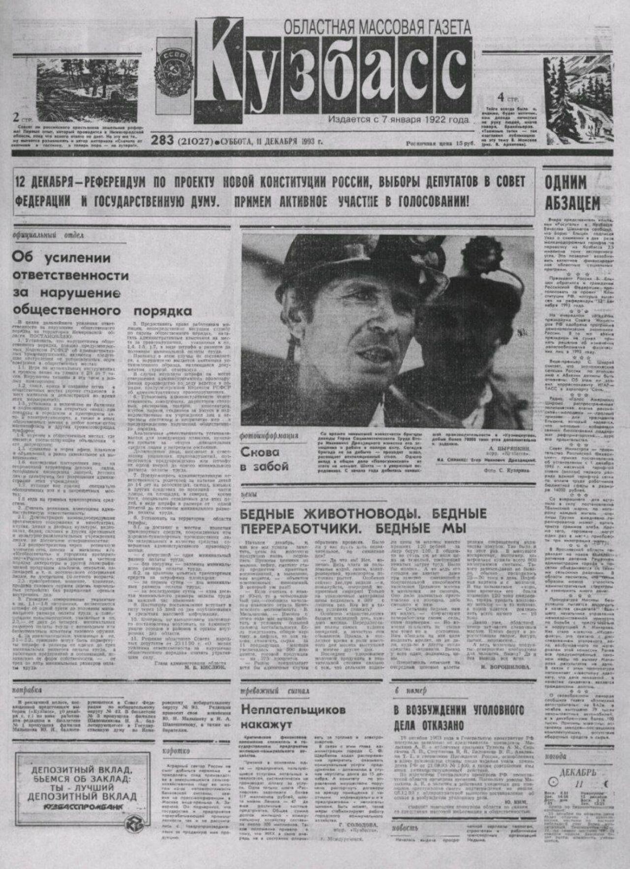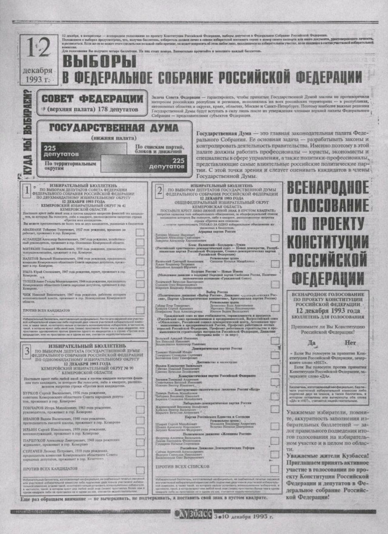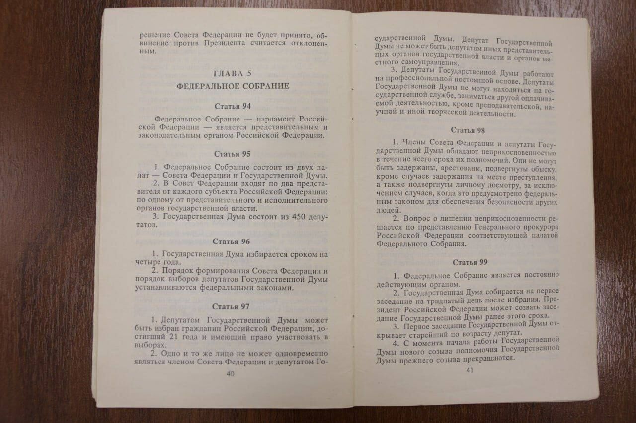 Губернатор Кузбасса Илья Середюк в своём поздравлении напомнил, что в региональных архивах хранятся уникальные исторические свидетельства того времени. Среди них – одно из первых печатных изданий Конституции и выпуски газеты "Кузбасс" 1993 года, где подробно рассказывалось о принятии основного закона.