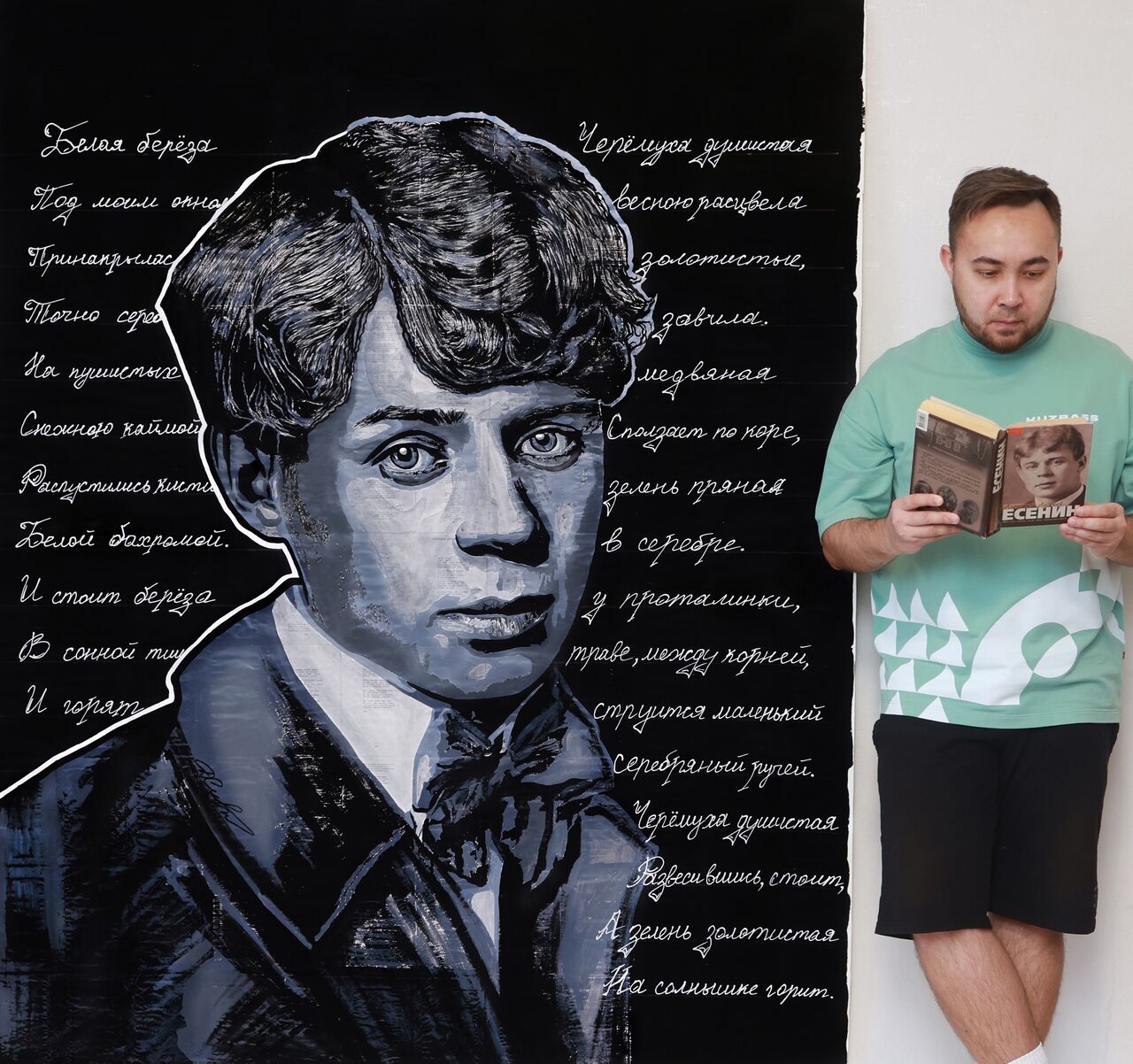 Уличный художник из Прокопьевска Дамир Хуссамов создал новый шедевр, посвящённый Сергею Есенину. Фотографией творец поделился на своей странице в соцсетях.