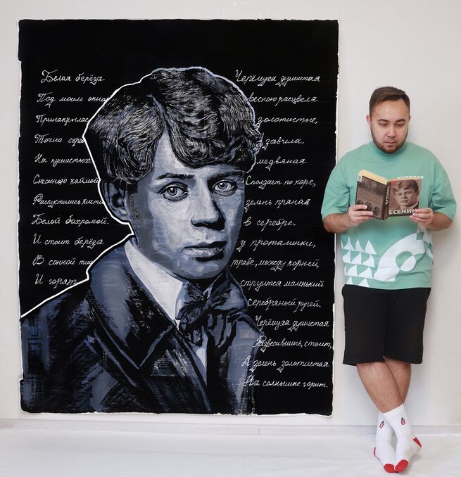 – Главный романтик русской литературы Серебряного века. Сергей Есенин. Портрет для остановочного павильона, – описал своё творение мастер.