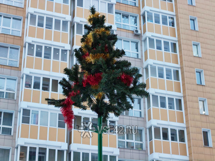 "Голая" новогодняя ёлка, установленная во дворе на улице Сарыгина, 37, довела местных жителей до истеричного смеха, о чём рассказал постоянный читатель VSE42.Ru.