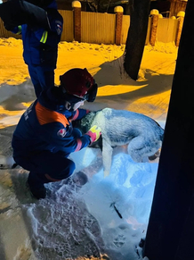 Как рассказали в республиканской Поисково-спасательной службе, хозяева пса обратились за помощью, когда поняли, что сами достать питомца из глубокой ямы не могут: ни собака выбраться не в силах, ни подручные средства не помогли. Оставалось надеяться на спасателей, у которых и опыт есть, и нужное оборудование.