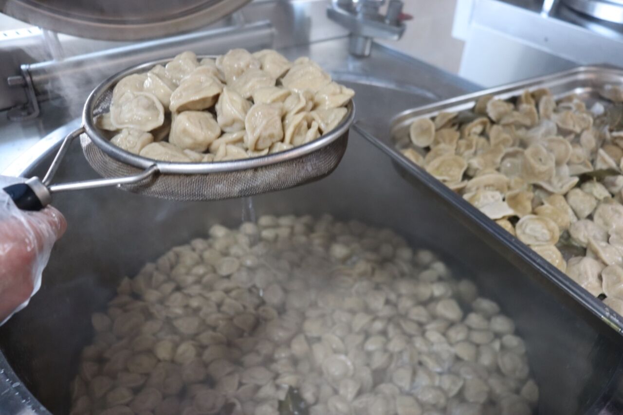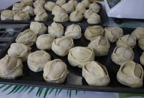 В первый день года на обед предусмотрены пельмени, манты или вареники с мясом. На ужин – рыба, запечённая под овощной "шубой" с крупяным гарниром, либо солёная сельдь с луком и картофельным гарниром, а также овощные салаты.