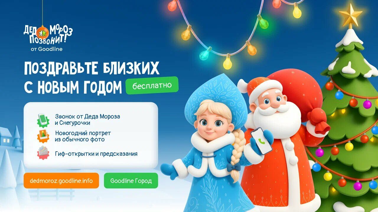 Фотозоны – это лишь часть подарков, которые Goodline приготовил для региона. В Кузбассе уже стартовала долгожданная теплая акция "Дед Мороз позвонит!". Она продлится до 14 января 2026 г.