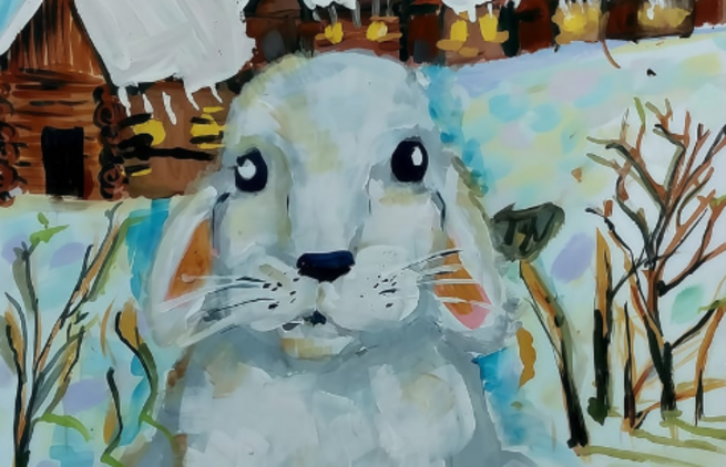 [Описание: ????] Ева Горшкова из поселка Каменного Крапивинского муниципального округа стала одной из 50финалистов. Она представила рисунок белого зайца по произведению Д. Н. Мамина-Сибиряка "Аленушкины сказки" в номинации "Внеклассное чтение".