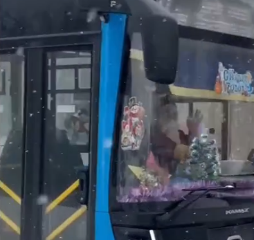 Кемеровчане восхищены тем, во что превратился городской автобус – им управляет настоящий зимний волшебник.